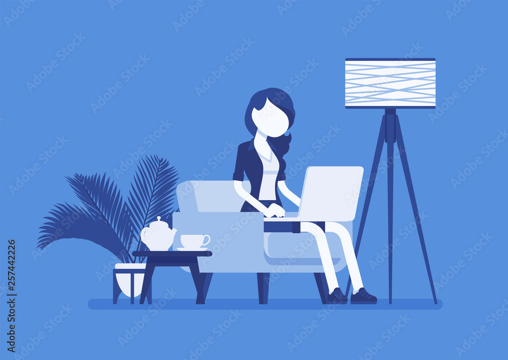 Female Employee Working From Home Happy Freelance Worker Self Employed In Comfortable Remote Location Workspace Homeworking Career In Telecommuting Jobs Vector Illustration Faceless Characters Stock Vector Adobe Stock